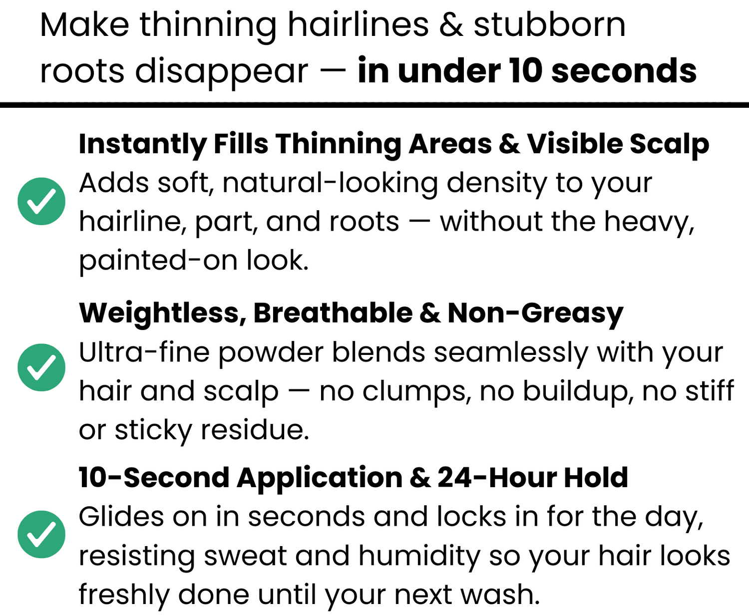 Use it to blur root grow-out between salon visits, refresh faded tones, and bring dull color back to life in seconds—while making your hairline look fuller, thicker, and more defined.
